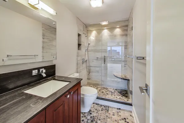 Beautifully updated two-bedroom, two bathrooms at Harbor Point. This home boasts newer floors throughout, an open kitchen with a massive island, marble countertops, and high-end stainless-steel appliances. Two large bedrooms with custom built out closets, as well as two updated bathrooms with glass-enclosed showers. Custom window treatments in every room, as well as hidden storage in the window seats. Large laundry room/walk-in pantry adjacent to the kitchen. Panoramic views of Maggie Daley & Millennium Parks, Monroe Harbor, Buckingham Fountain, Michigan Avenue Skyline, and Museum Campus. Storage is included and rental parking is available. Full amenity building with doorman, pool, fitness center, sauna, steam room, and sundeck. Dry cleaners and grocery store in the building. Monthly HOA: $1,403.74 | 2023 Taxes: $12,237.19