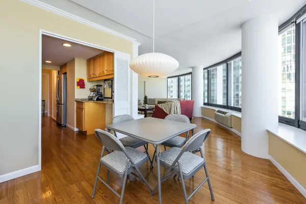 Rarely available 2 bedroom unit in sought after '08' tier. Panoramic views of Lake Michigan, Navy Pier and DuSable Harbor from your living room. Hardwood floors throughout; Murphy bed in 2nd bedroom. Pocket door between LR and second bedroom. The kitchen and bathrooms have all been nicely upgraded. Built in bookcases in living room and bedroom #2. Giant master closet. Building has resort quality amenities including an indoor pool, health club, deluxe patio with BBQ grills, grocery store, children's playroom, guest parking. CTA bus #60 comes to the front door.