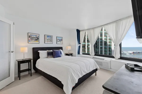 Enjoy comfortable city living in this northeast corner residence at Harbor Point, offering approximately 1,000 square feet and a thoughtfully modified floor plan with an expanded bedroom layout. Ideally positioned within the building, this unit showcases desirable views of Lake Michigan and Navy Pier, bringing in natural light and an iconic Chicago backdrop. This well-maintained home features quality finishes, including marble flooring in the foyer and dining area, white cabinetry, designer tile, and a full appliance package in the kitchen. The spacious living area and bedroom are filled with natural light and enhanced by built-in details. The bathroom offers granite finishes and a bath and shower unit, and the unit includes the convenience of in-unit laundry-a valuable and sought-after feature. Updated electrical and lighting elements add to the home's overall functionality and appeal. Move-in ready as-is, this residence presents an excellent opportunity for a buyer to enjoy immediately or update over time to match their personal style. Located in the full-amenity Harbor Point community, residents enjoy a prime setting with easy access to everything downtown has to offer.